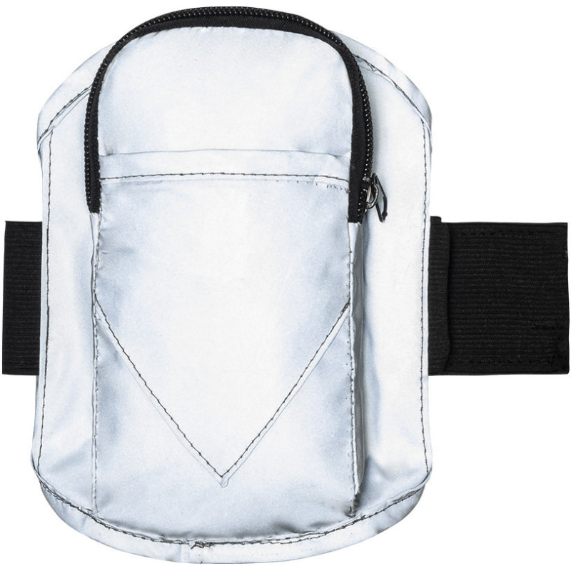 Sports armband in 210T polyester. Made using highly reflective fabric, based on the principle of retro-reflection of light, a property of nighttime visibility that consists of the refraction of light back to its source of origin. Zippered main pocket and front pocket with velcro closure. With adjustable, elastic strap and water resistant.