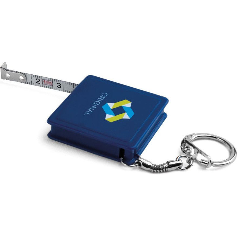 Keyring with 1 metre measuring tape. 40 x 40 x 9 mm