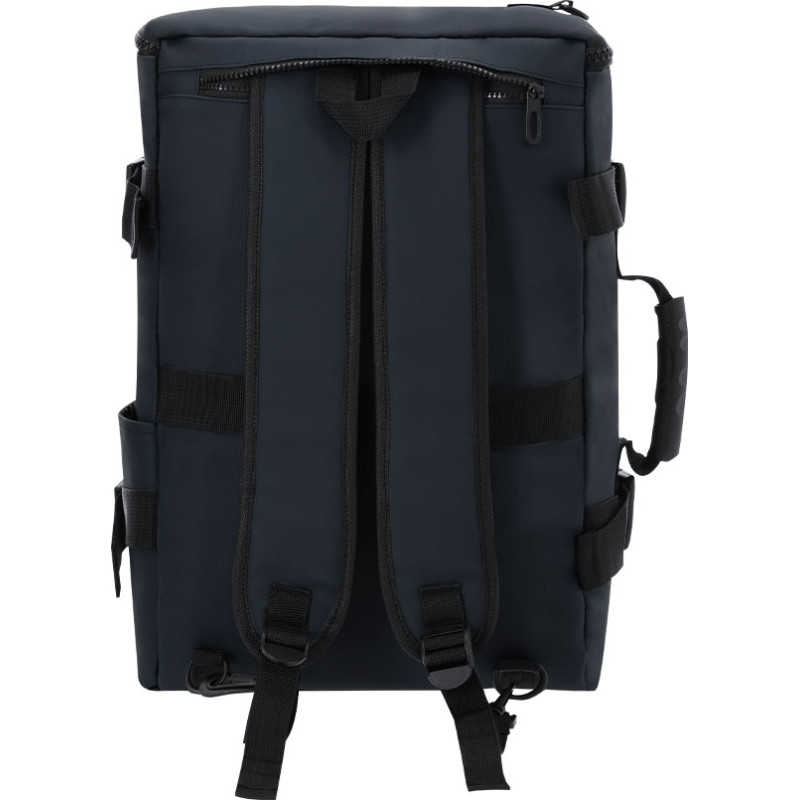 Document holder backpack made from PU. Features an urban design that includes a central pocket with zipper closure and double pull. With padded interior for laptops up to 15 inches, additional interior pocket with zipper closure, and two pockets on the front. Its shoulder straps and back are padded and adjustable for added comfort. Includes side straps allowing for thickness adjustment to make it compact. Offers three modes of carrying: as a backpack, thanks to the padded shoulder straps and compartment for storing them; as a document holder, thanks to its padded transport handle; and as a messenger bag due to its long adjustable strap.