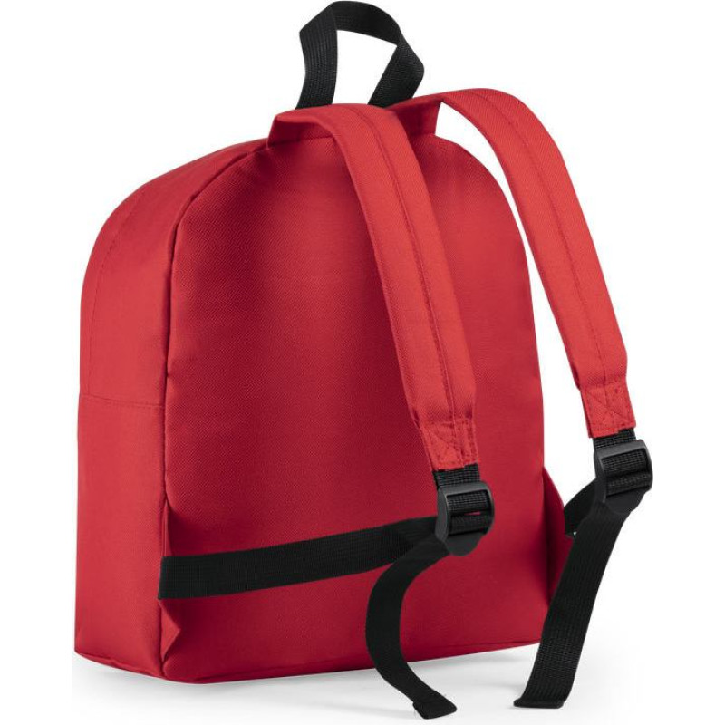 Leisure backpack for kids in resistant polyester 600D material, available in a wide range of vid colors. With double puller zipper pocket and front pocket. Reinforced corners and accessories in black color. With padded back and adjustable, padded, shoulder straps.