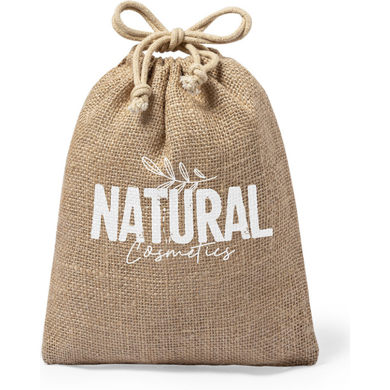 Nature line bag in resistant jute of 260gsm, with elegant string closure and stitched finish.
