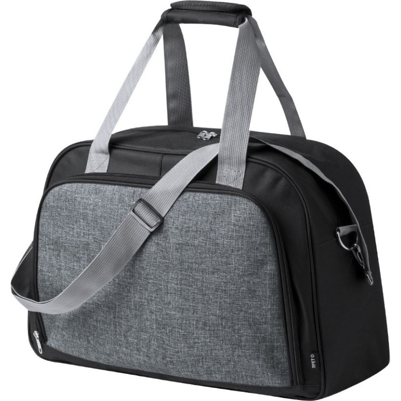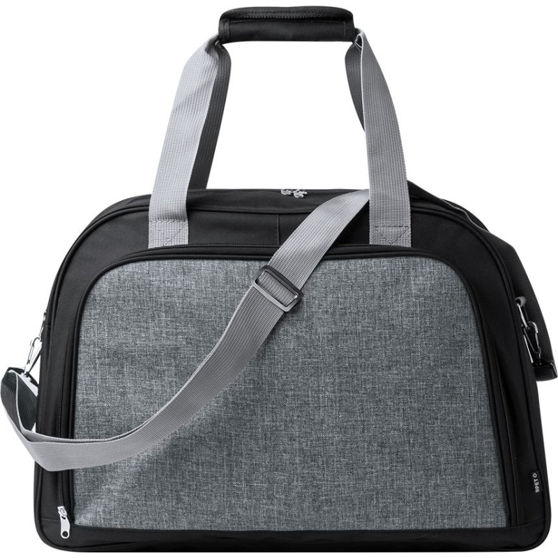 Large capacity bag made of durable 600D RPET. Including 2 resistant handles with a velcro closure pad for comfort. Front pocket with zippered closure and an adjustable shoulder strap. Available in a variety of colours, including a RPET label. Presented in an individual recycled bag.RPET material is made from recycled plastic, thus promoting the reuse of plastic waste and helping the sustainability of the planet.