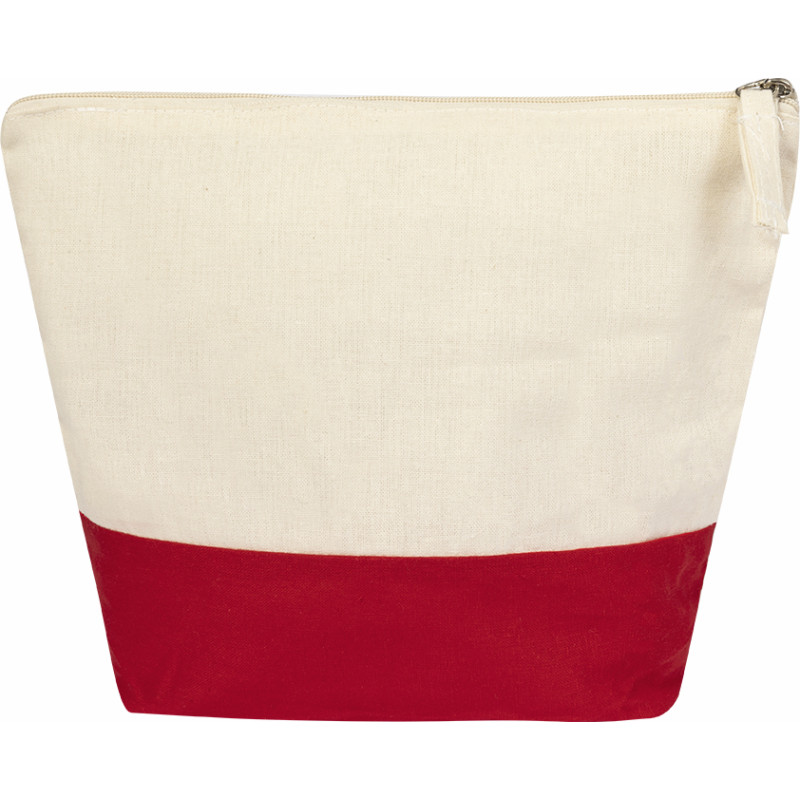 Multipurpose beauty bag in. Cotton material of 140g/m2. Bicolor design, with body in natural color cotton and base in a wide range of vivid colors. Matching color zipper, with chromed puller.