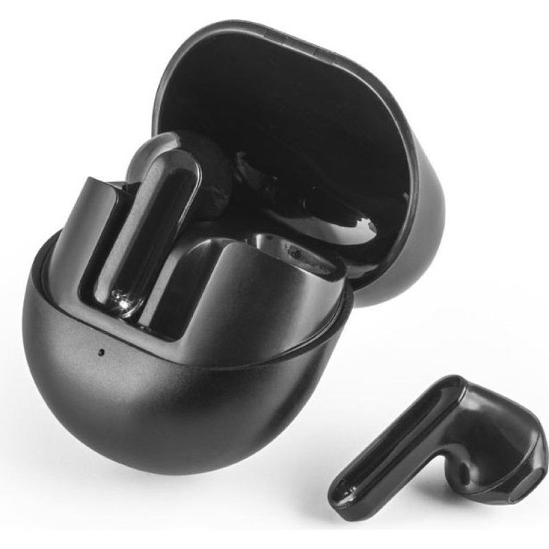 Lightweight and comfortable earphones for everyday use, so you can enjoy your favorite music without any discomfort. Their oval-shaped housing makes them even more elegant and easy to carry with you during the day. The maximum combined autonomy (case and earphones) is approximately 12 hours.Material: recycled ABS (100% rABS)Wireless transmission: BT V5'3Capacity: 300 mAhBattery life: 12 hoursFeatures: hands-free calling, volume control and mobile device playlistIncludes: USB-C charging cableDelivery: kraft paper gift box 59 x 51 x 26 mm | Case: 75 x 90 x 37 mm