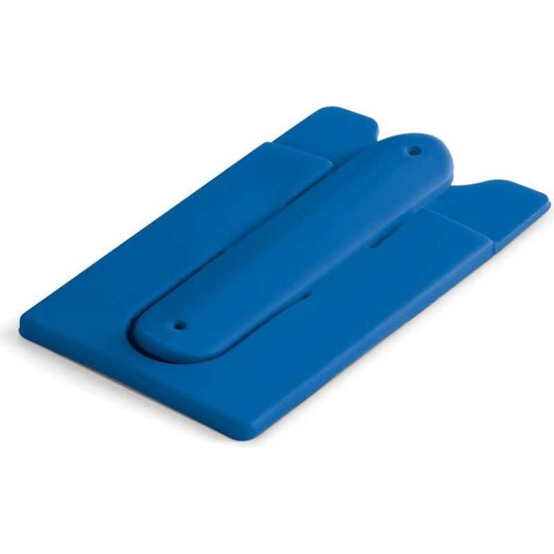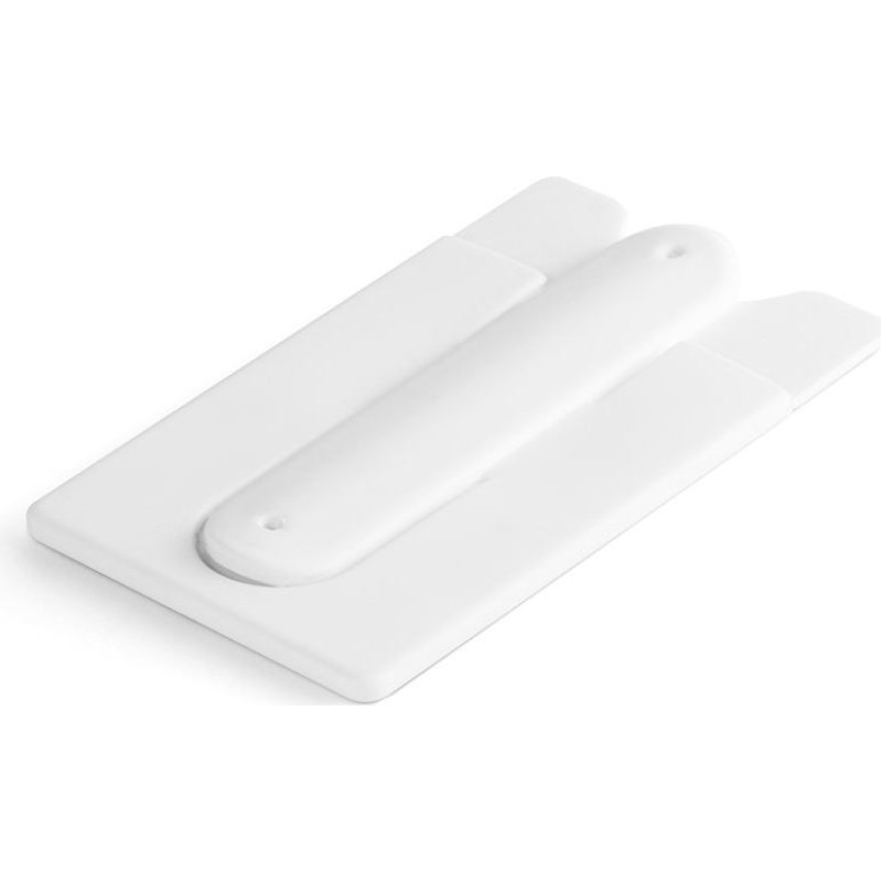 Silicone smartphone card holder with a sticker on the back and flexible support. 57 x 96 x 5 mm