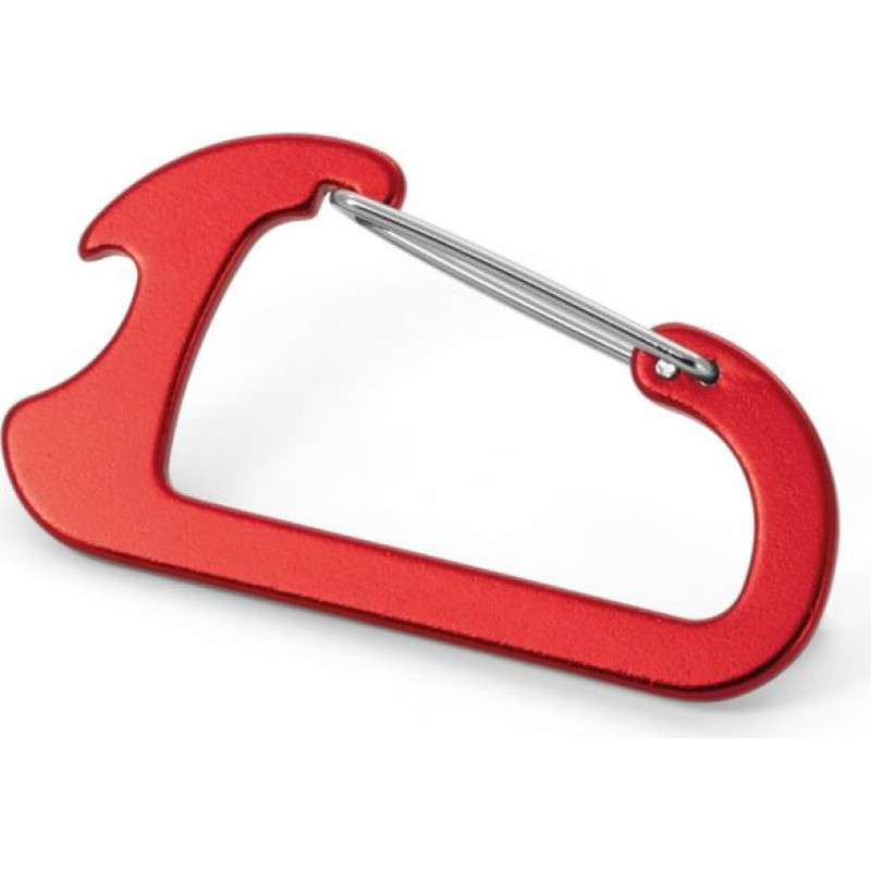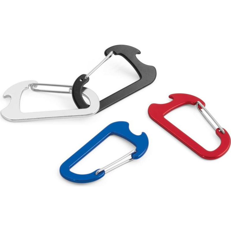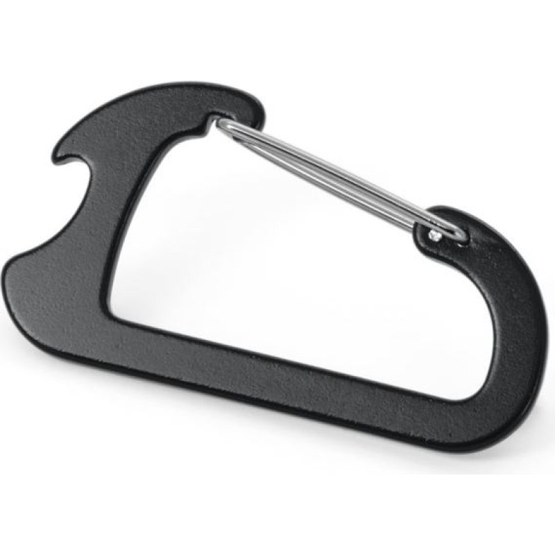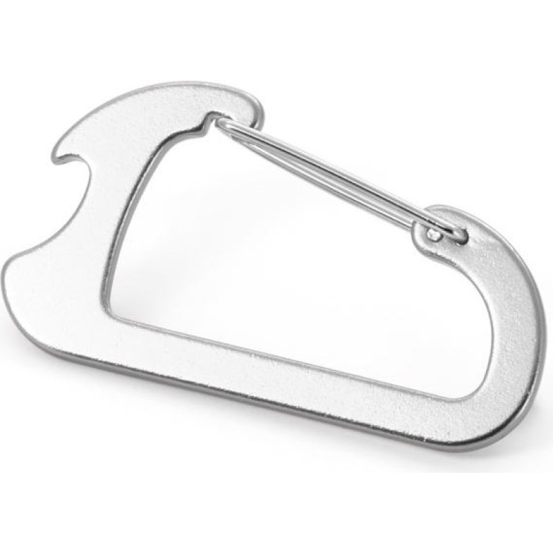 Aluminium carabiner with bottle opener. Product not suitable for climbing. 44 x 79 x 3 mm
