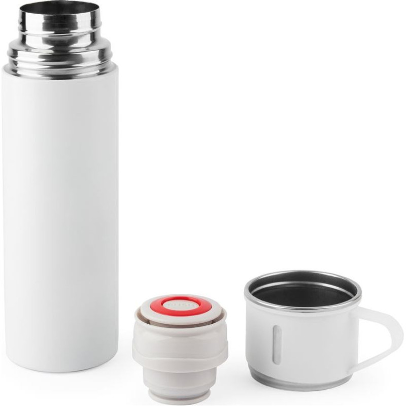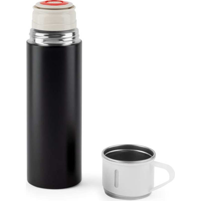 Double-walled stainless steel bottle (90% recycled) with a matte finish. The lid, also in stainless steel and with a matte frost finish, can be transformed into a glass with a capacity of up to 140 mL. Bottle capacity up to 490 mL. ø67 x 230 mm