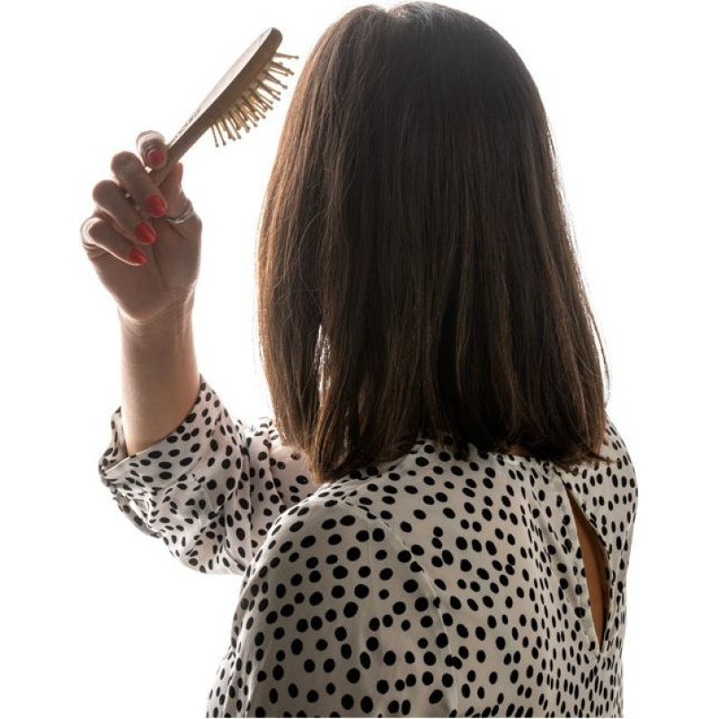 Hairbrush with wooden handle and bamboo bristles. Ideal for travelling. Supplied in kraft paper gift box. As the product is made from natural materials, the colour and the printing result may vary between products. Brush: 156 x 43 x 25 mm | Box: 165 x 55 x 35 mm