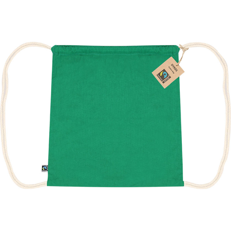 Drawstring backpack made of 140g/m2 cotton. With Fairtrade certification, a fair and alternative trading system that promotes the development of peoples and the fight against poverty. Sewn finish, cotton cords, and weight resistance up to 9 kg. Includes Fairtrade label and distinctive hangtag made of recycled cardboard.