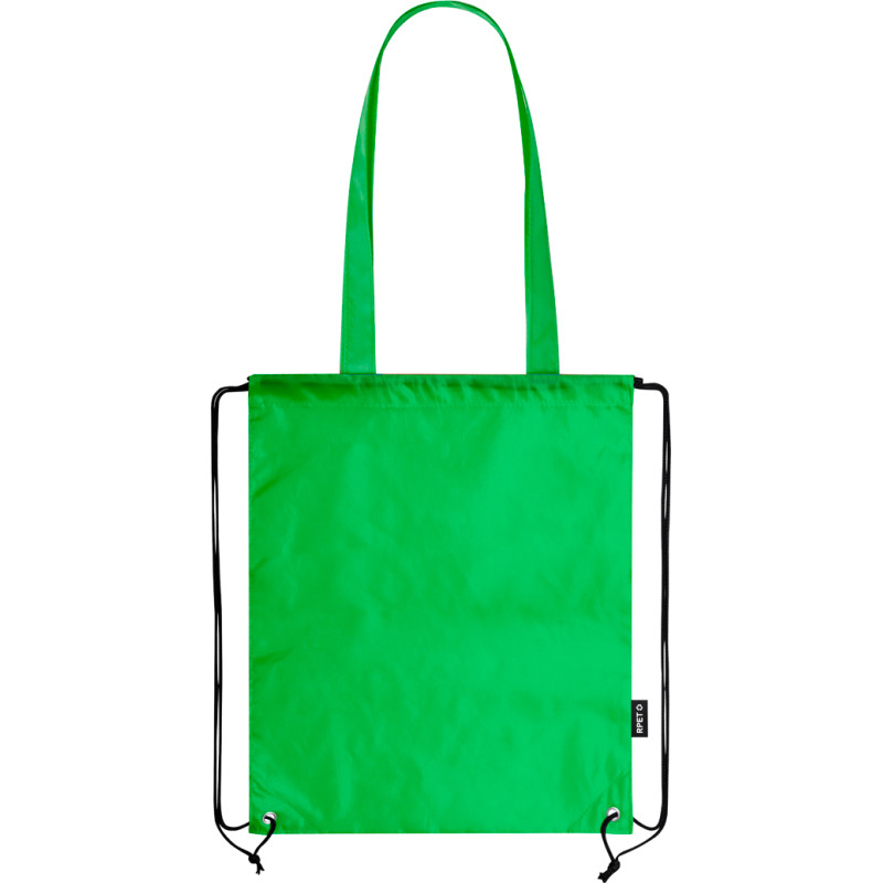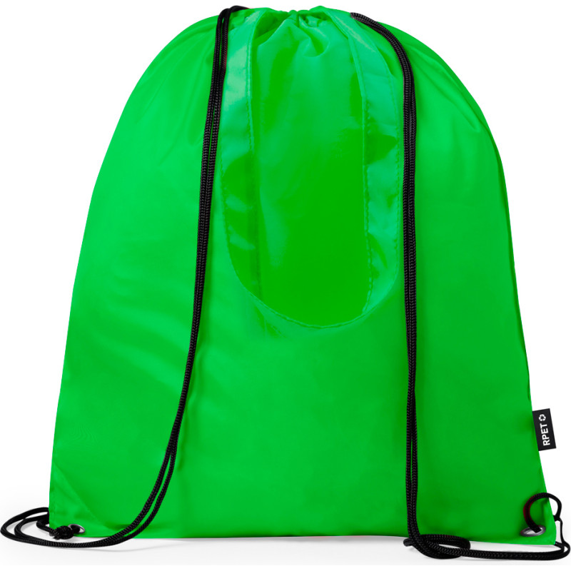 Drawstring backpack and bag in durable 210T RPET, with matching 70 cm carrying handles. With reinforced metal eyelets and recycled RPET side label. Available in a wide range of colours.RPET material is made from recycled plastic, thus promoting the reuse of plastic waste and helping the sustainability of the planet.