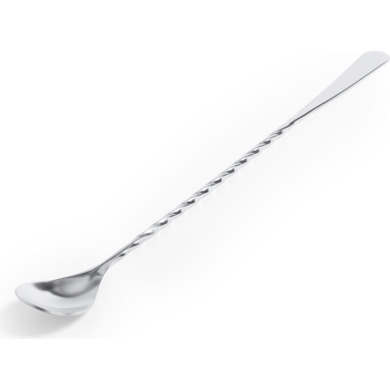 Stainless steel stirrer for drinks. 25,6 cm body in spiral design, with flat end for printing.