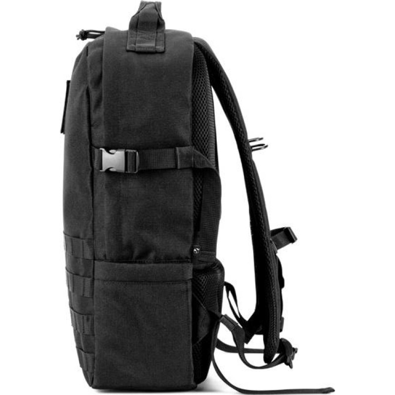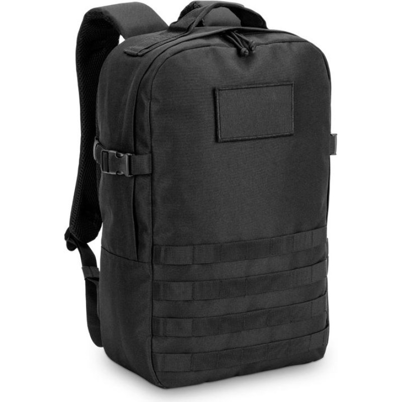 Backpack for everyday use in professional or leisure environments, as well as for outdoor sports and hiking. Its design makes this backpack a versatile and resistant product. Made of high-density 600D recycled polyester and 210D recycled polyester lining. It has a main compartment with a pocket for a laptop up to 17'3" and several storage pockets, including a zip pocket. A side pocket for carrying your bottle and a top handle. It has special features such as compression straps on the sides, multifunctional webbing straps, a chest strap and a trolley strap if needed. It also contains a removable badge made from the same material as the backpack, ideal for personalisation. Capacity up to 21 litres. 310 x 470 x 150 mm