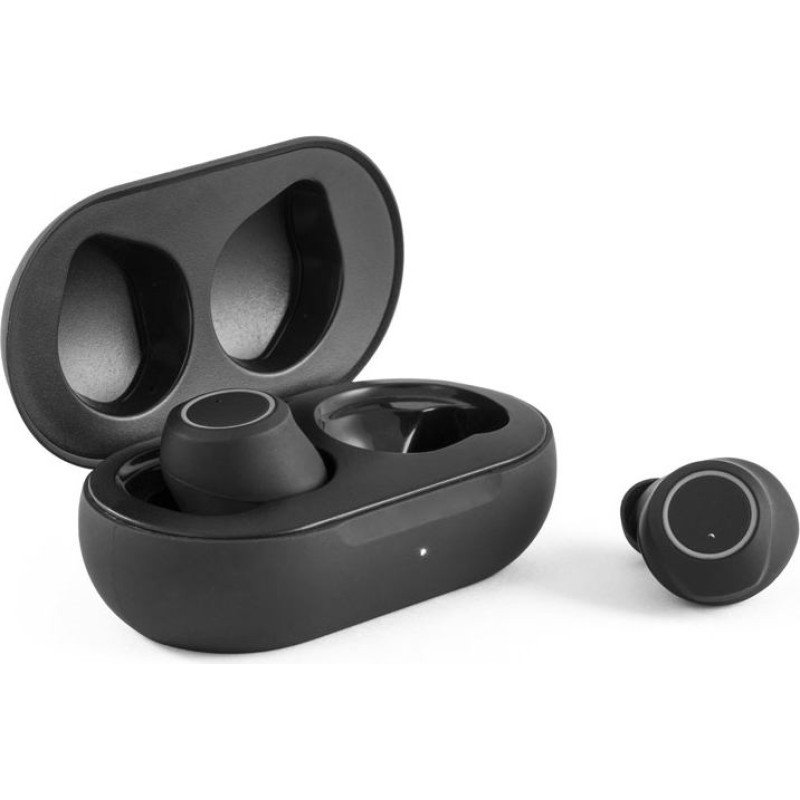 True wireless headphones that are practical and easy to take everywhere. It has BT 5'0 transmission and a 300 mAh battery with approximately 6 hours of autonomy. Includes USB/USB-C cable for charging. Supplied in a black gift box. 68 x 39 x 28 mm