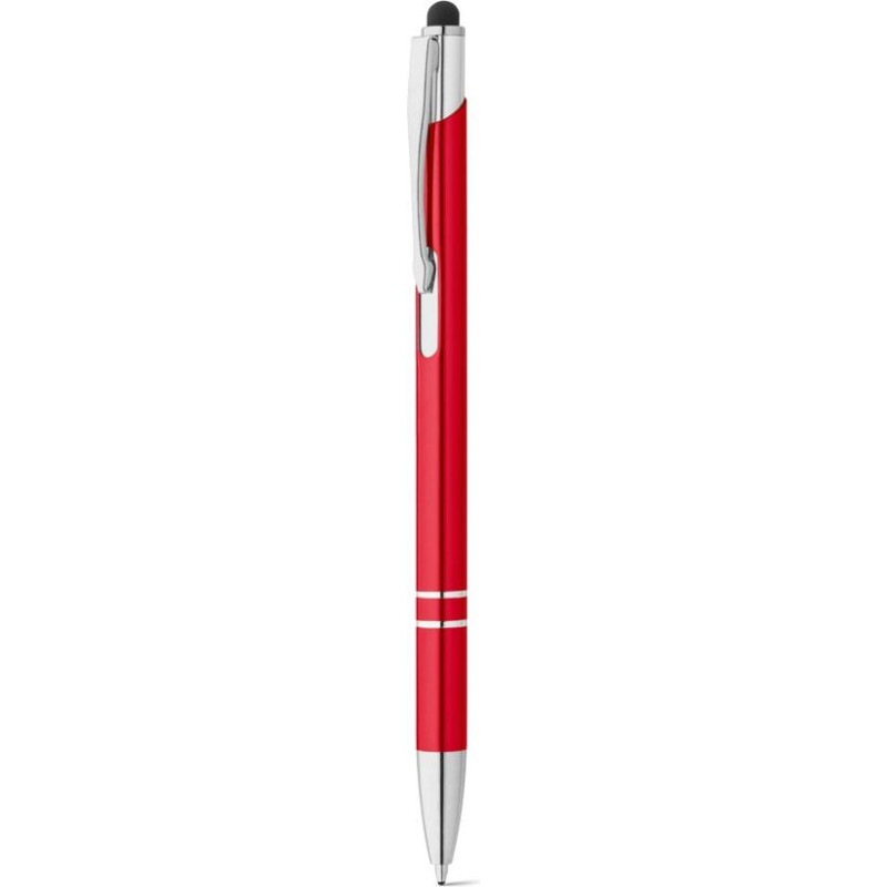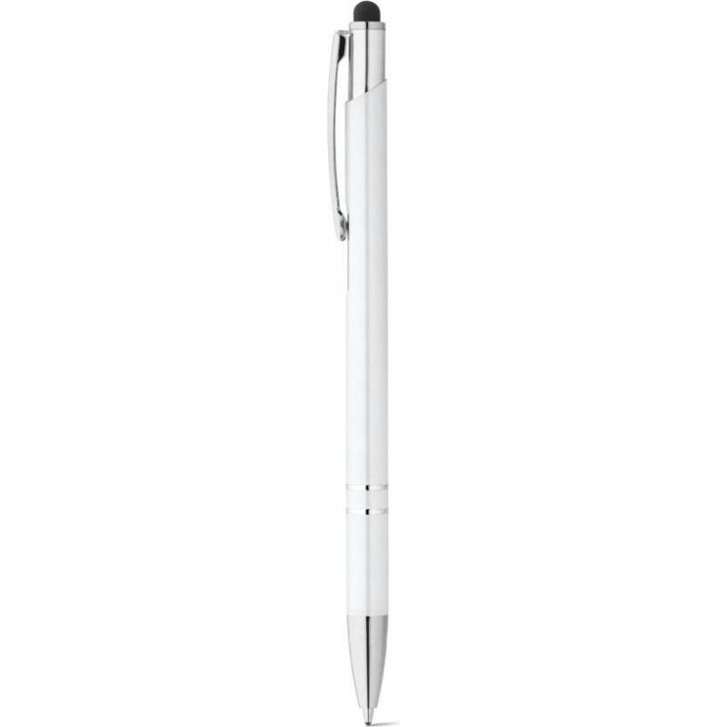 Aluminium ball pen with touch tip and clip. Blue ink. ø8 x 142 mm