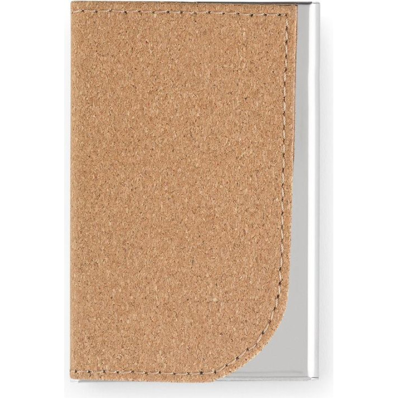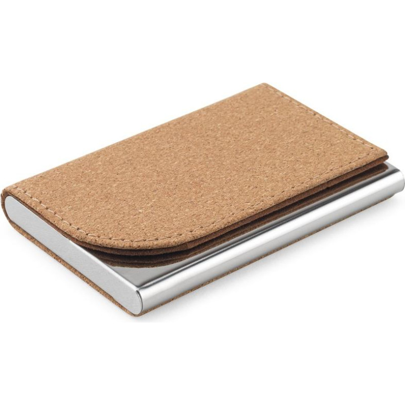 Set consisting of a card holder and a key holder, both in metal and cork. The card holder can hold up to 7 cards. Supplied in a kraft paper gift box. As the product is made from natural materials, the colour and the printing result may vary between products. Key ring: 60 x 17 x 6 mm | Card holder: 94 x 63 x 13 mm | Case: 125 x 135 x 18 mm