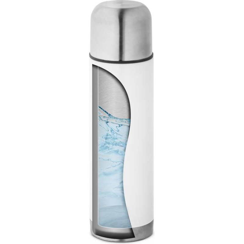 Double-walled stainless steel sublimation thermal bottle with lid with vacuum system. Capacity up to 500 mL. Keeps drinks hot for 12h and cold for 24h. Supplied in a gift box. ø70 x 245 mm