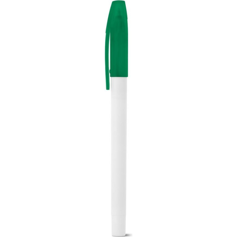 PP ball pen with white body and coloured cap with clip. Blue ink. ø10 x 142 mm