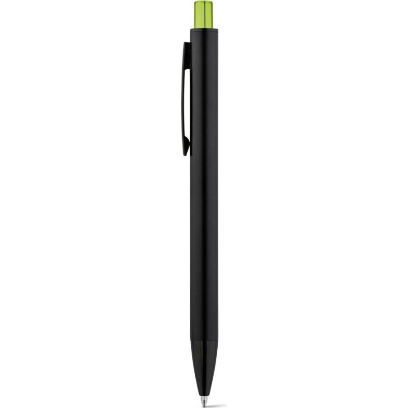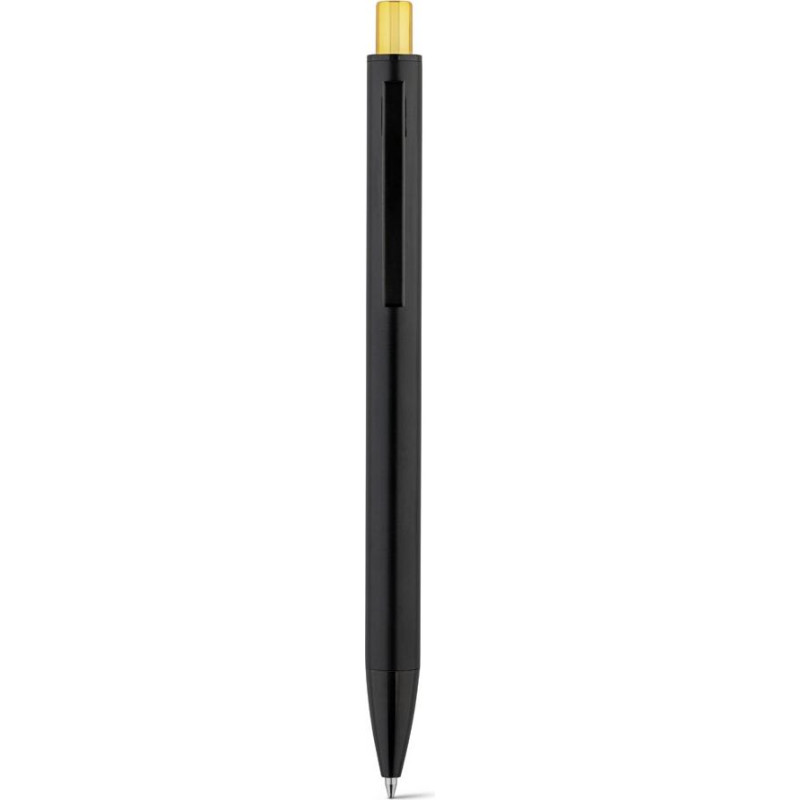 Aluminum ballpoint pen with matte finish and button with glossy finish. Body with double finish, allowing laser engraving with colored effect. Blue writing. ø10 x 140 mm