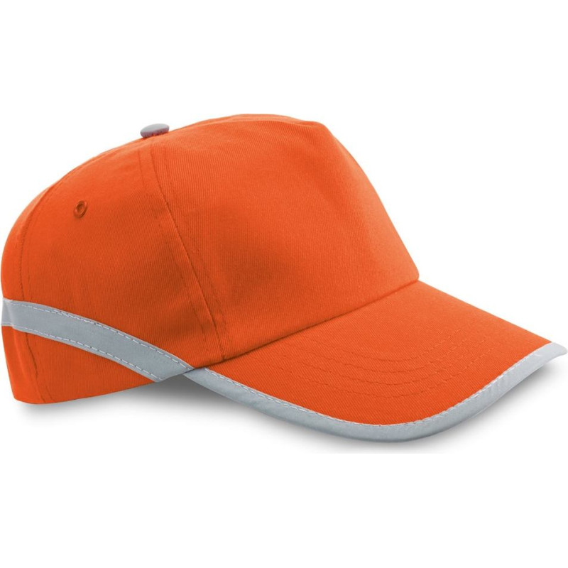Polyester cap with reflective elements, ventilation holes and adjustable closure with self-adhesive hook and loop fastener. Promotional product. Size: 580 mm