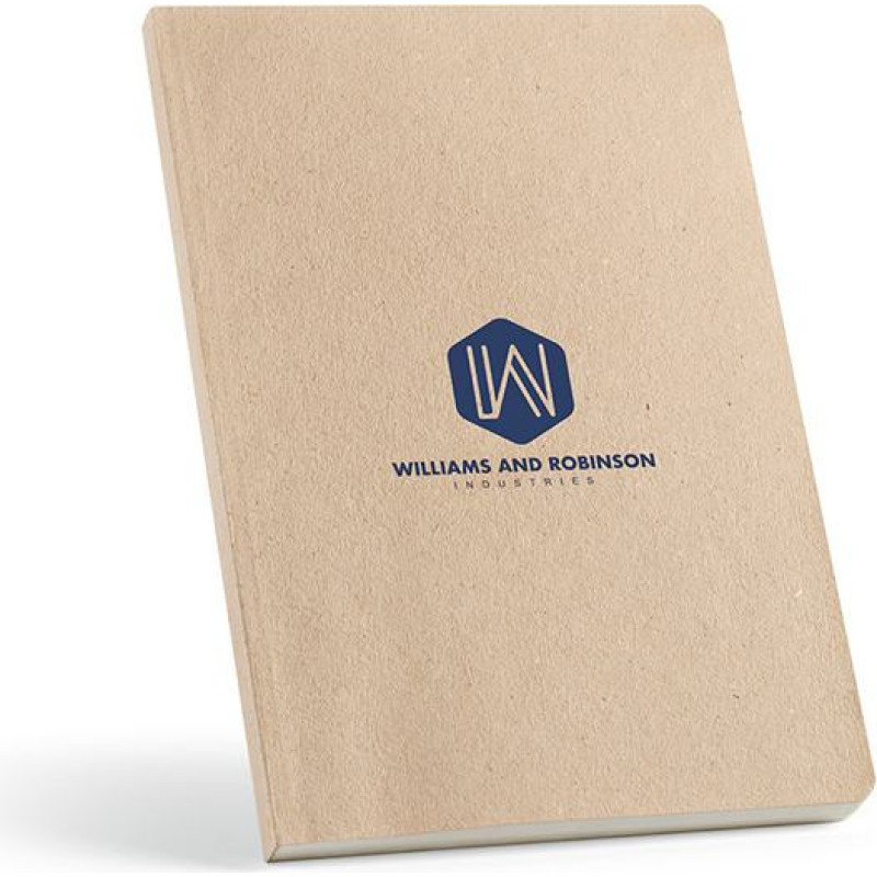 Joyce A5 notebook with Banana cover. 196 recycled 80gsm dotted pages with a marked space for your date and page info, encased in a softcover. Enhanced with a flysheet carrying a story, a blend of purpose and style. Supplied in an individual kraft sleeve.