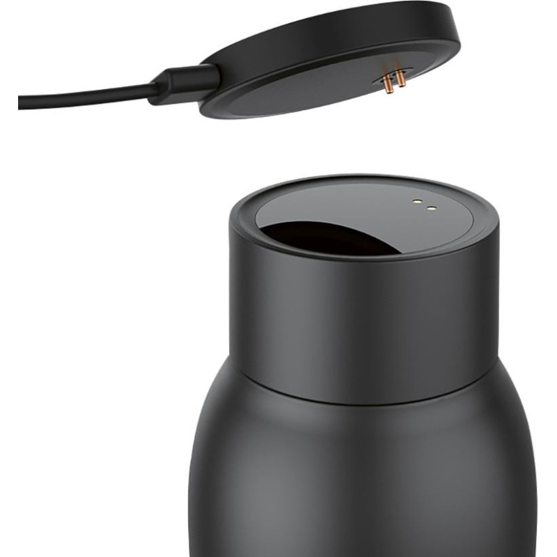The La Plata is an elegant and functional bottle, made of recycled stainless steel, combining durability and sustainability. With a capacity of 650ml (610ml net), it features double-wall construction and a non-slip base, ensuring thermal insulation (keeps drinks hot for 30 hours and cold for 72 hours) and safe handling. Its LED display shows the beverage temperature and also includes a reminder function to prompt you to drink (after 1, 1.5, or 2 hours). The bottle is leak-proof and recharges wirelessly via the included magnetic USB-C cable (white), with a 5V/2A input and a 400mAh battery. An elegant and eco-friendly choice, supplied in a premium kraft box.