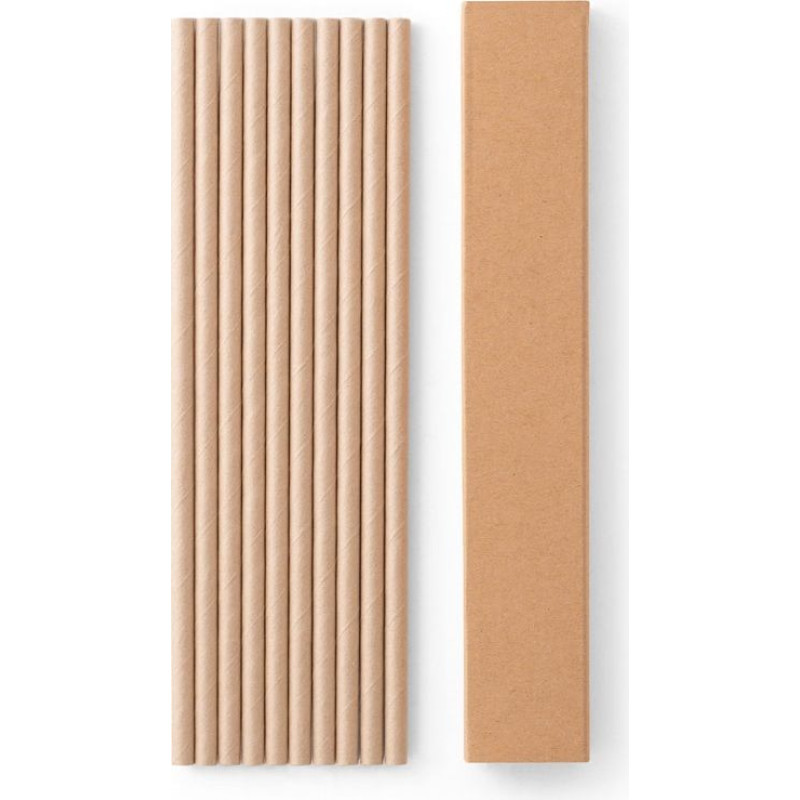 Set with 10 disposable kraft paper straws. Supplied in a kraft paper box. Straw: ø6 x 196 mm | Case: 33 x 200 x 14 mm