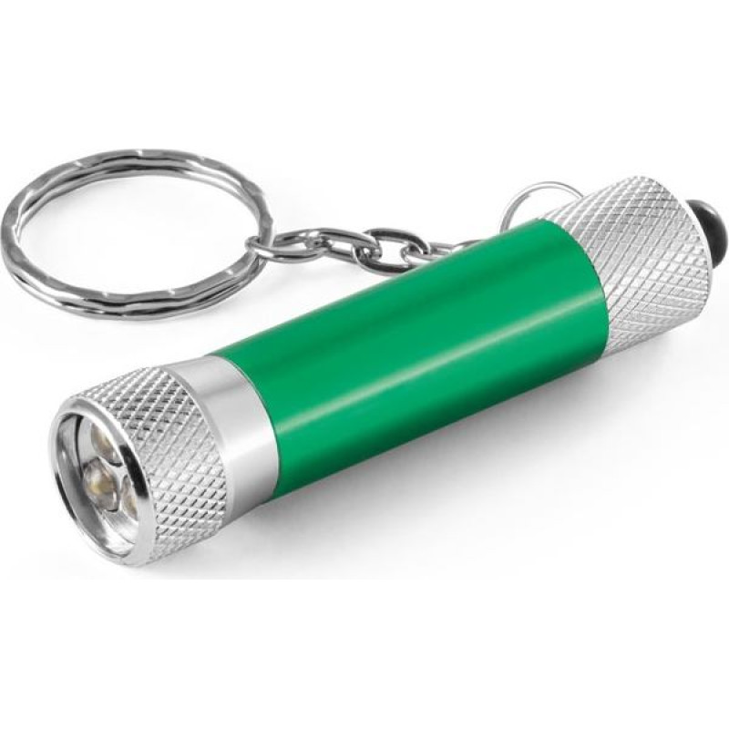 Aluminium keyring with a 3 LED flashlight. Includes 4 LR44 batteries. ø17 x 62 mm