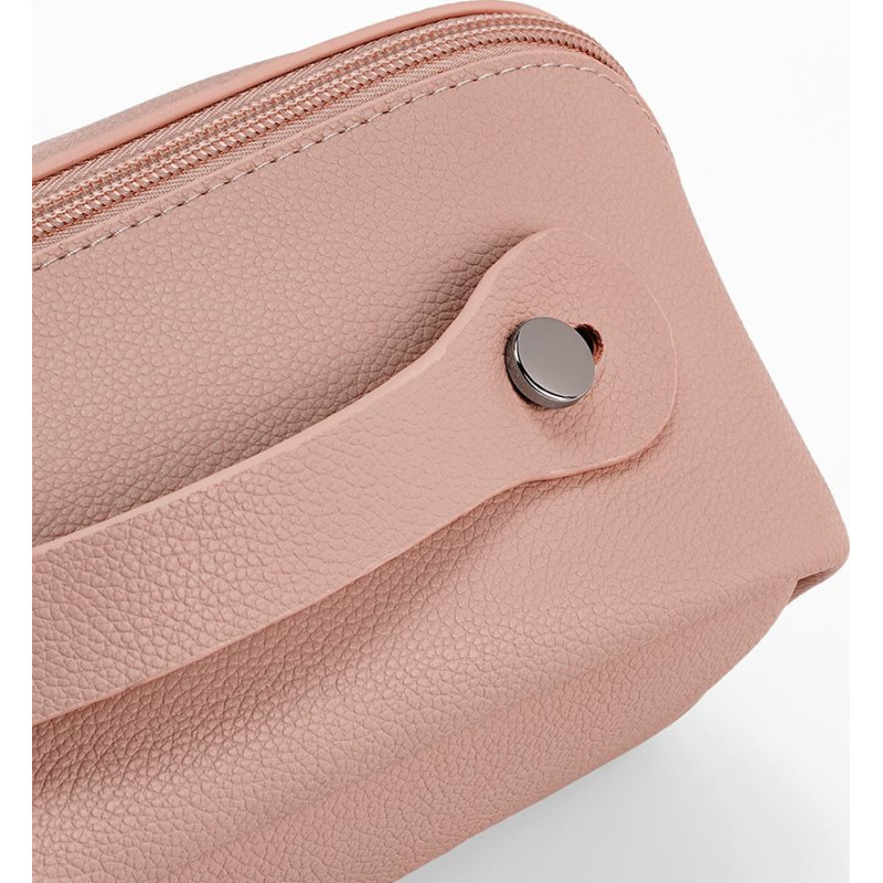 Macao recycled leather toiletry bag with an expanding zipper that reveals two large compartments, a smaller pocket and allows easy access to the contents (3.5L). Water resistant, durable and comes packed in an individual biodegradable polybag.