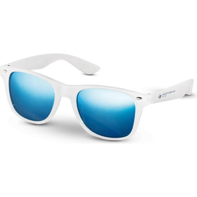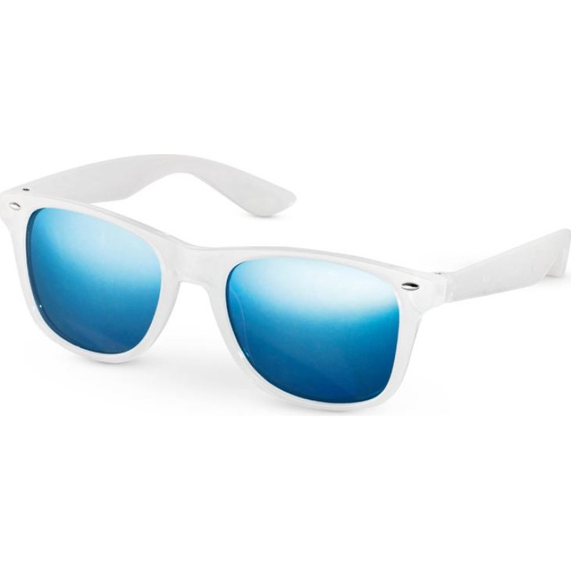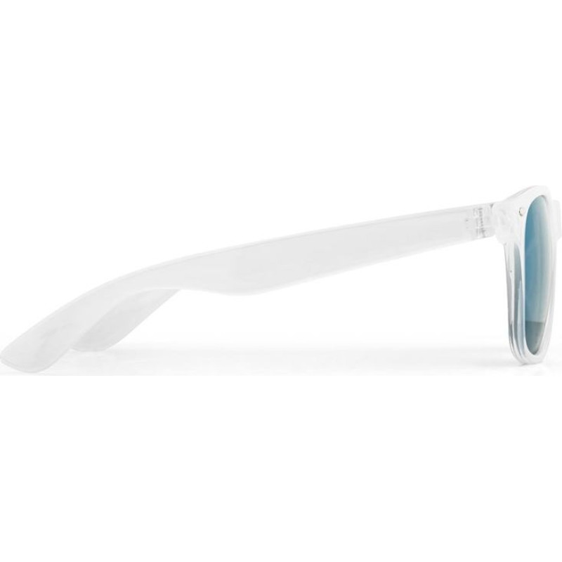 PC sunglasses with translucent frames, category 3 mirrored lenses and UV400 protection. Complying with EN ISO 12312-1. 146 x 49 x 150 mm