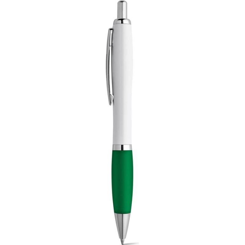 ABS ball pen with clip and metal trim. Coloured non-slip grip and white body. Black ink. ø12 x 140 mm