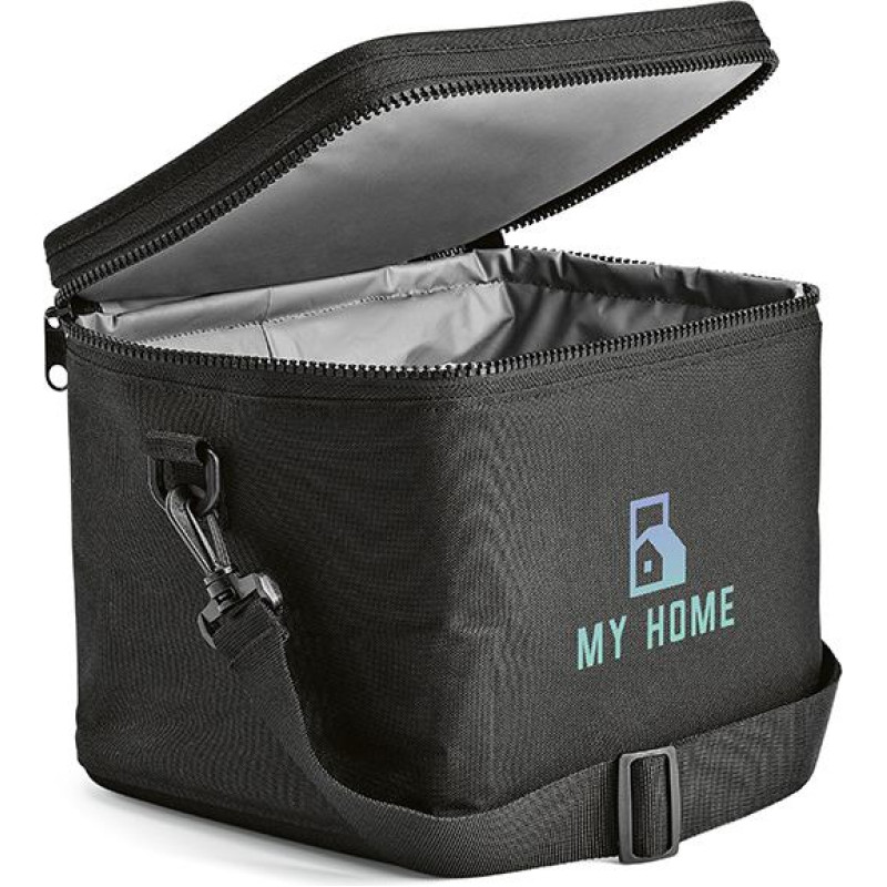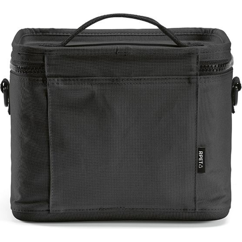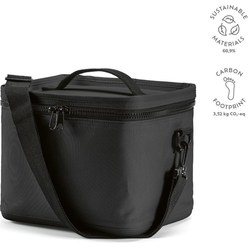 Munich 600D rPET 10L cooler, crafted from recycled materials. The wide opening, double way thermo injection zippers and insulation body ensure temperature retention. Plus, the addition of the shoulder strap improves your comfort. Suitable for 14 cans.