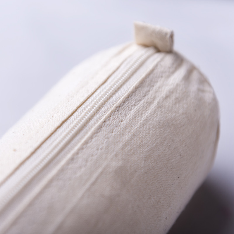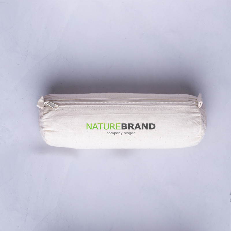 Nature line case in cotton material. In natural color, with a classic cylindrical design, matching color zipper and handy side handles for an easy opening.