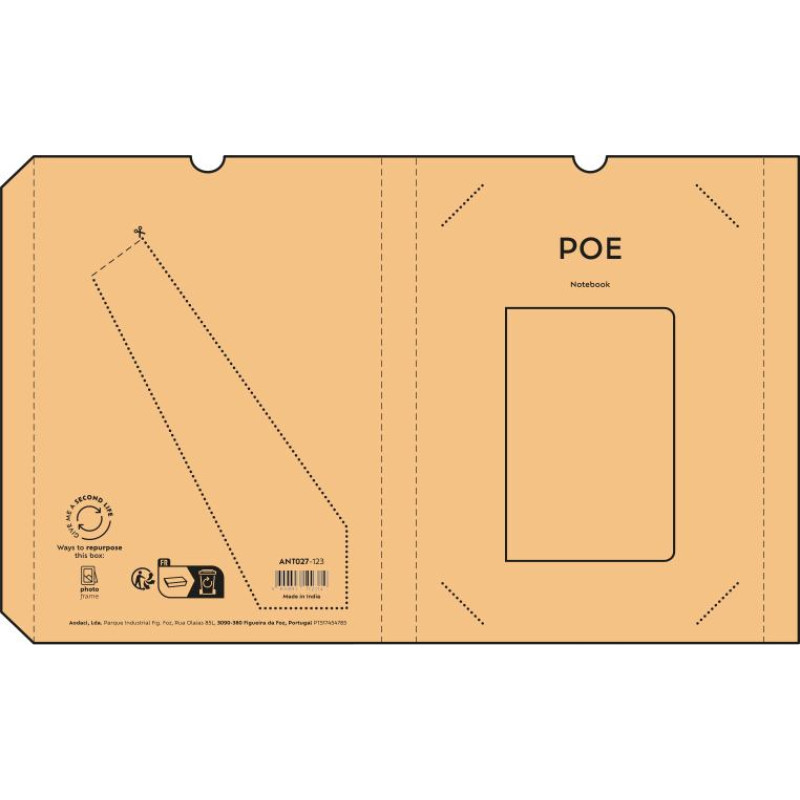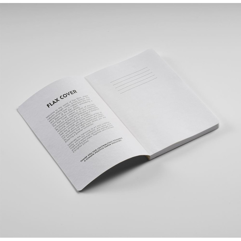 Poe A5 notebook made from Flax, with 196 dotted pages with a section for date and page reference made from 80gsm recycled paper. This soft cover also has a flysheet for an artistic touch. Supplied in an individual kraft sleeve.