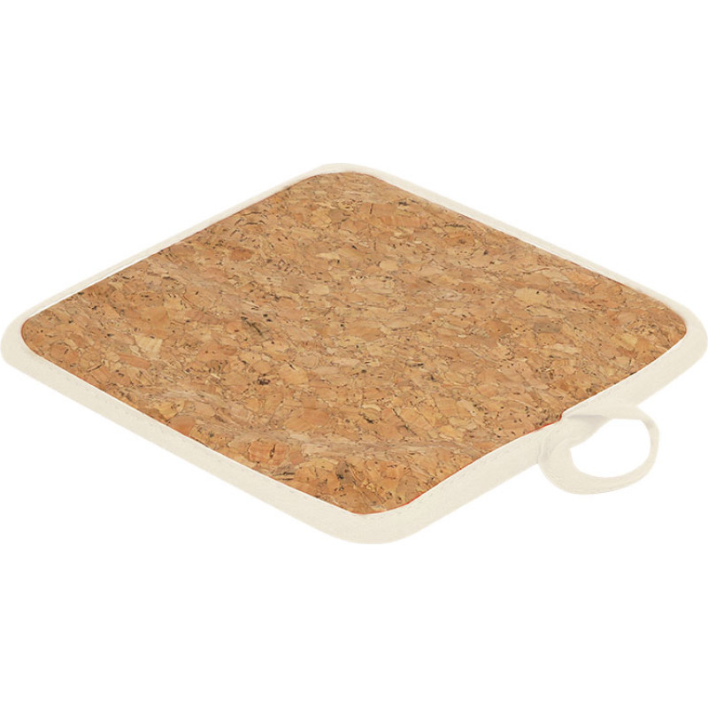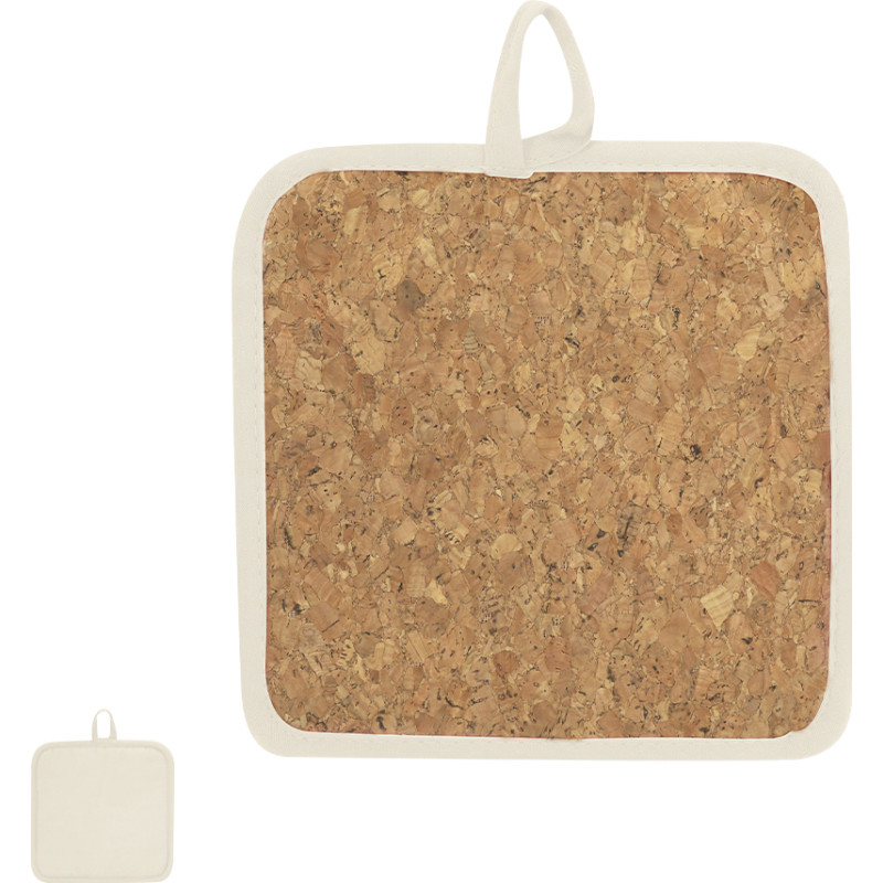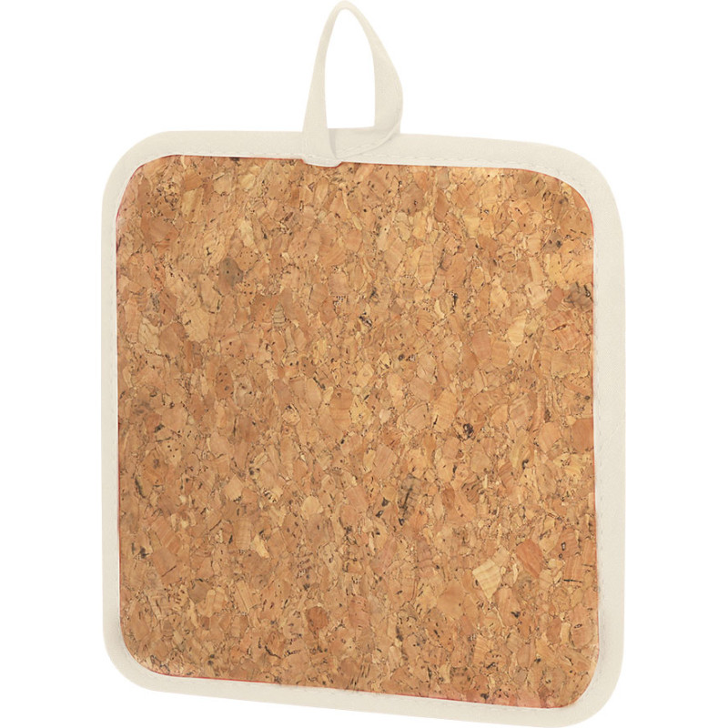 Kitchen grasp made of cotton and cork with a hanging strap.