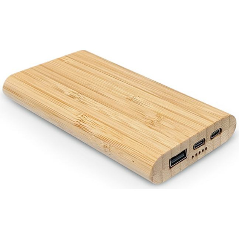 Pythagoras Bamboo Powerbank. With a capacity of 10000mAh and a rapid 15W output (both cable and wireless), it seamlessly combines the modern convenience of a USB-C port while retaining the versatility of a USB-A. An elegant and sustainable choice packed inside an individual kraft box.