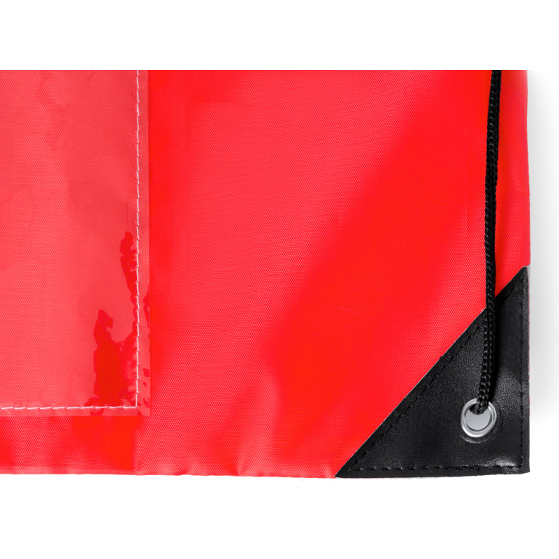 Drawstring backpack made of soft 210D polyester. Self-closing strings and black reinforced corners with metal eyelets. Including a transparent pocket for the number and available in a wide range of colours (white colour specially made for sublimation printing).
