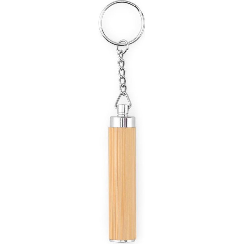Bamboo and ABS key ring with LED torch. Includes 3 LR41 batteries. Supplied in a kraft paper gift box. ø15 x 75 mm | Case: 79 x 27 x 19 mm