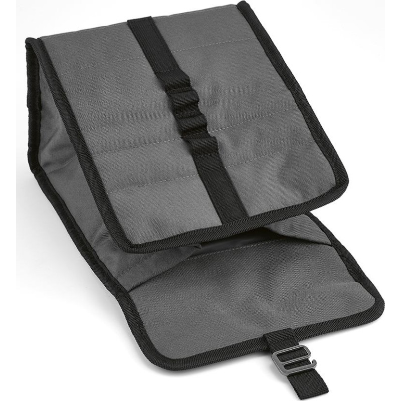 Reykjavik rPET cooler (9L), with sleek black handles and trim. The fabric is derived from recycled materials. The roll-top closure ensures easy access, while the top handle adds portability. Secured with a metal G hook closure, this bag offers a sturdy and stylish fastening solution that’s easy to use and built to last. Suitable for 9 cans.