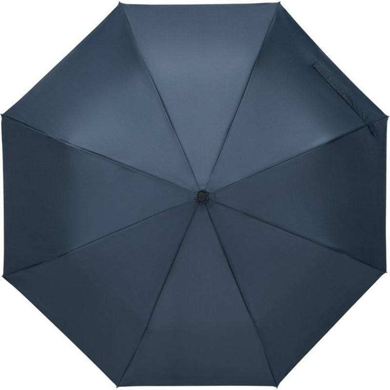 190T recycled polyester (100% rPET) pongee umbrella, with fibreglass ribs and wooden handle. Foldable umbrella in 3 sections, with automatic opening and closing and windproof. Supplied in bag. Umbrella: ø990 x 285 mm | Bag: ø55 x 240 mm