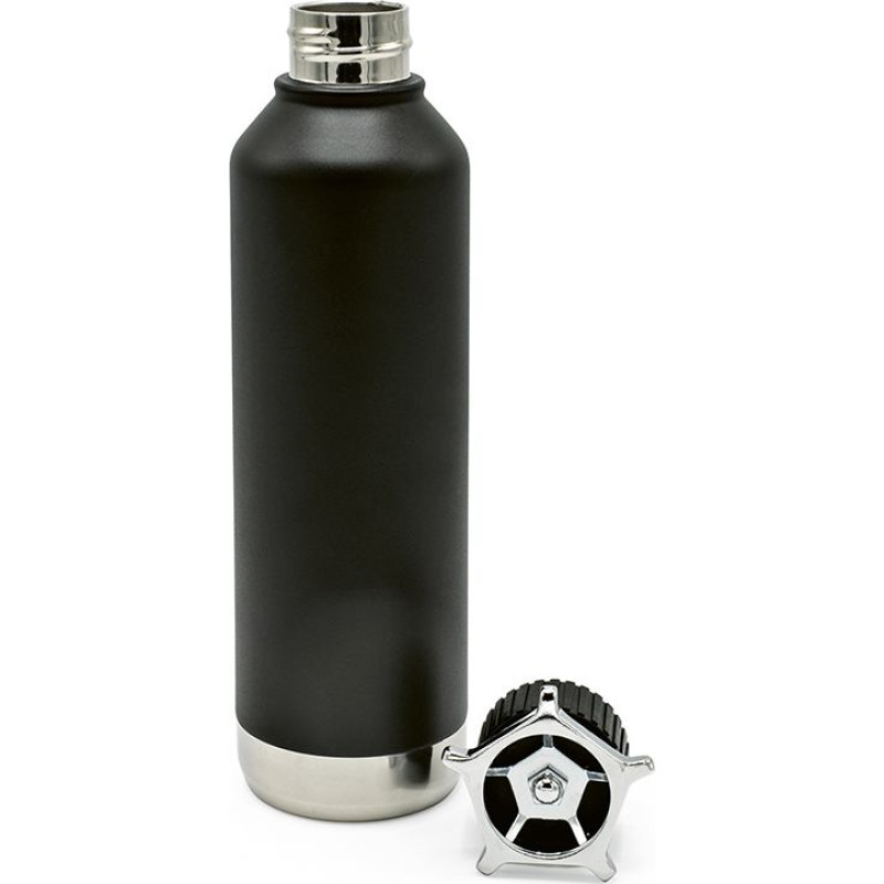 Spiglo is a unique bottle made from recycled stainless steel with capacity of 780ml (750ml net). The innovative wheel shaped cap adds character. The double walled insulation means that your drinks stay hot for 30 hours and cold for 72 hours. It has a leakproof lid that will keep your belongings safe. Packaged in an individual kraft box.