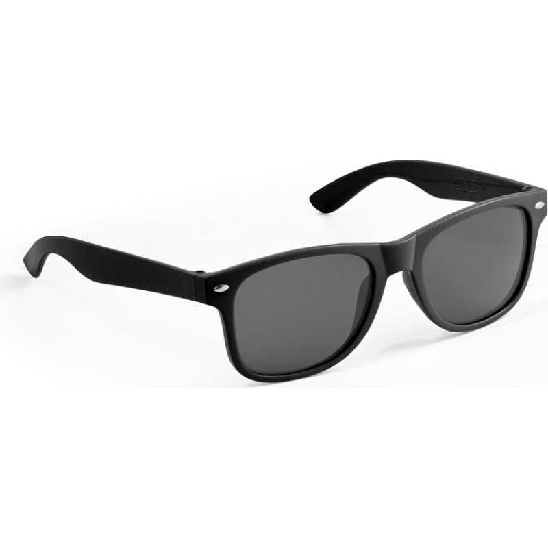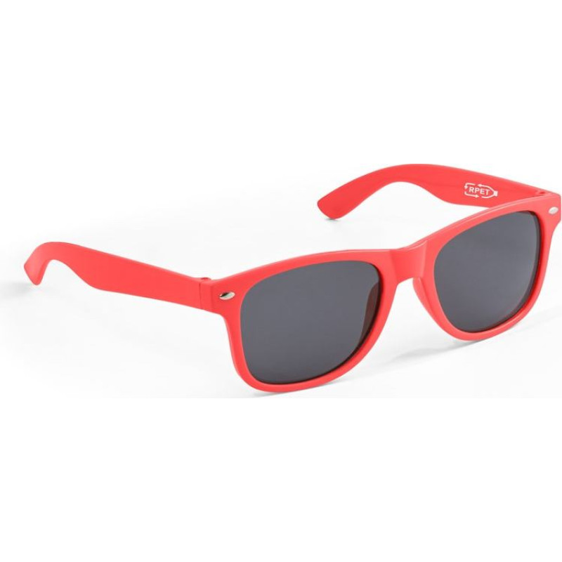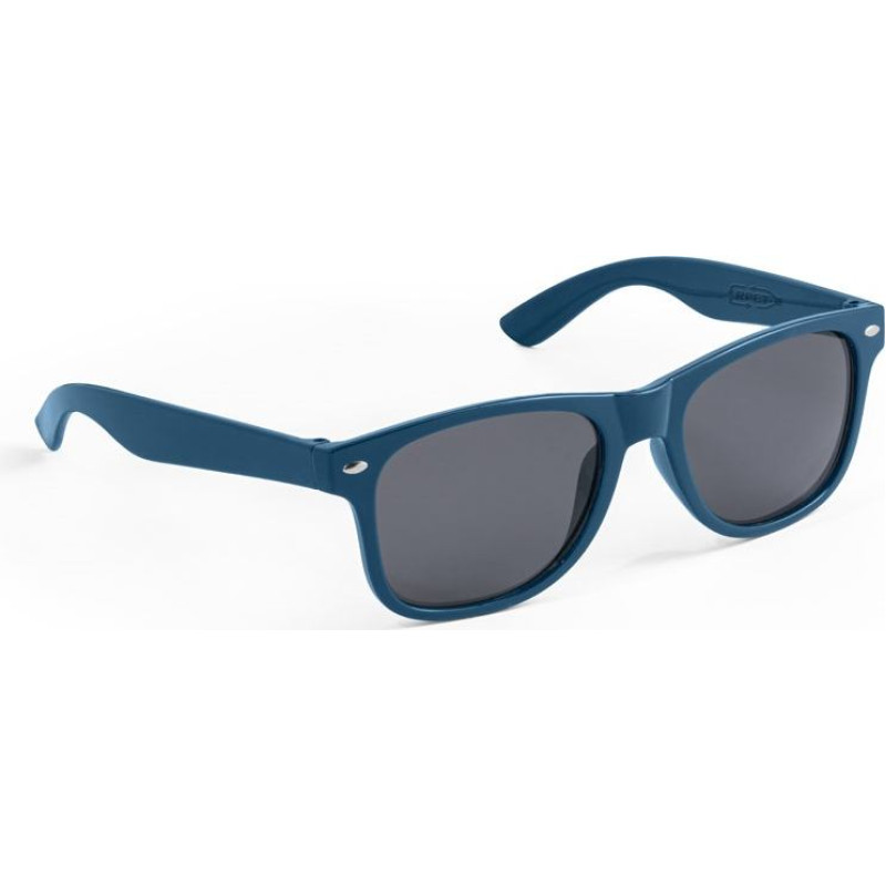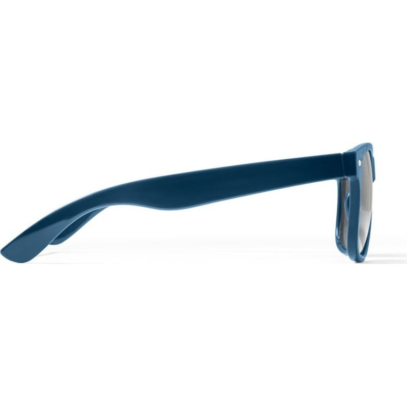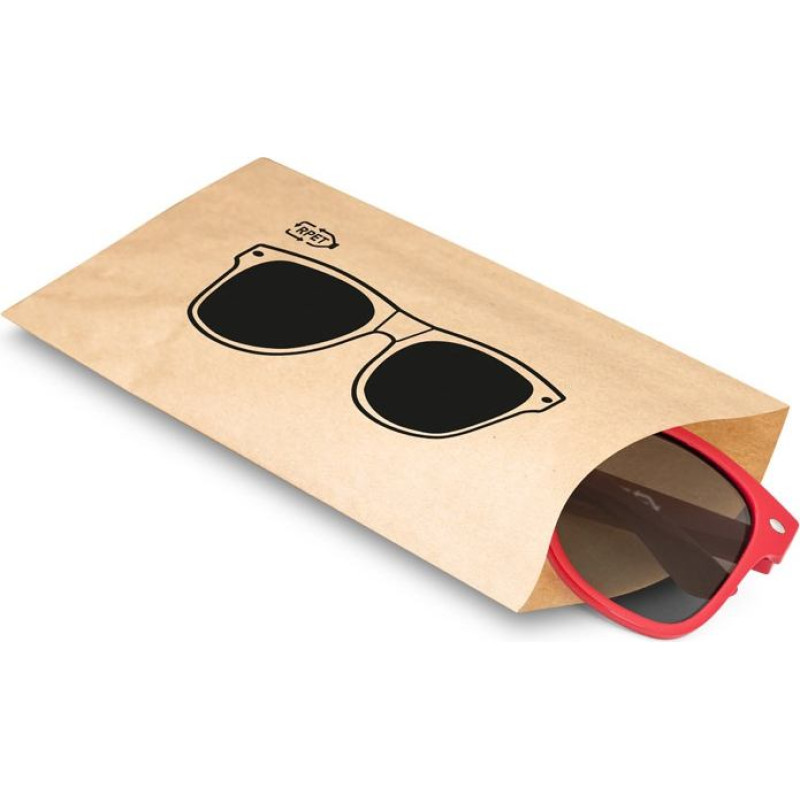 Recycled polyester (100% rPET) sunglasses with category 3 lenses with UV400 protection, in compliance with EN ISO 12312-1. Supplied in a natural paper pouch. 146 x 49 x 145 mm
