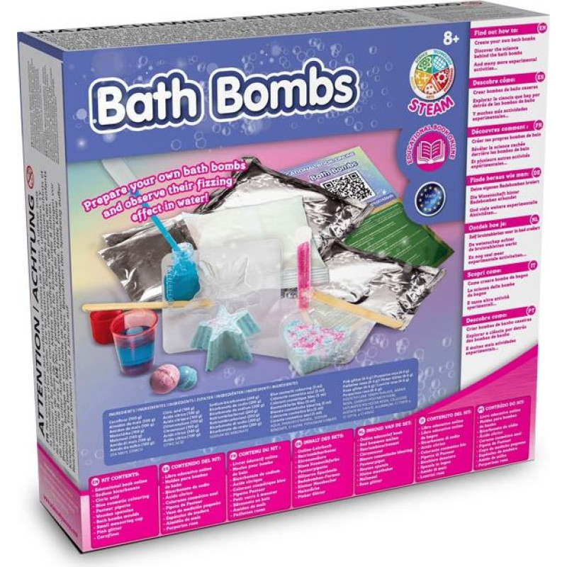 Educational toy for children to prepare and enjoy in the bath. A Kit for making sparkling and relaxing bath bombs in different colours and shapes. Recommended age: 8 + years old 233 x 218 x 63 mm