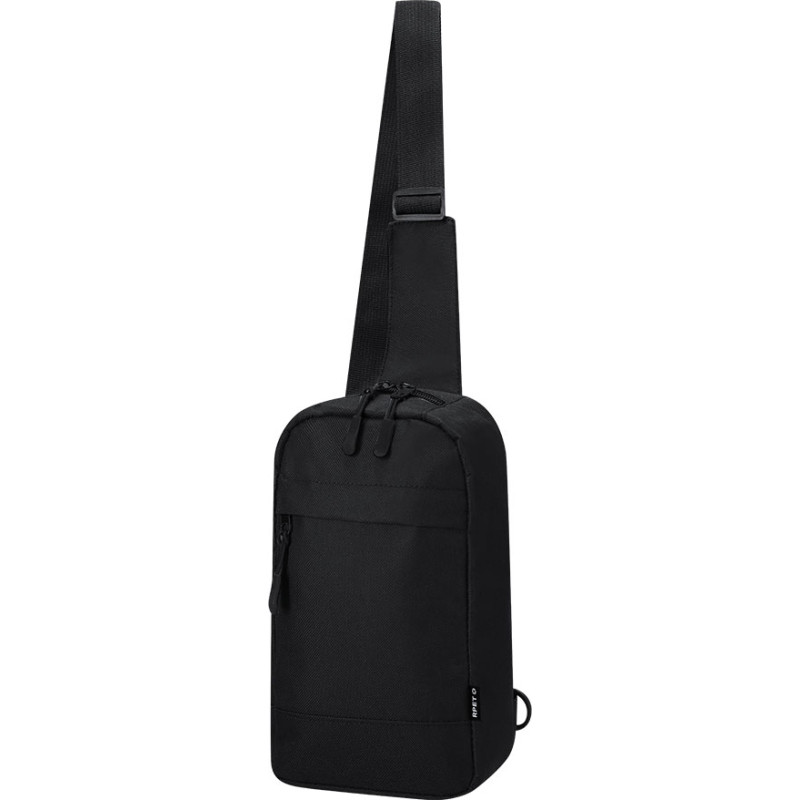 Shoulder bag made of durable RPET 600D polyester. With double pull zip closure system. Features a spacious main pocket and practical front pocket with zipper. Includes adjustable transport strap, with different usage options, providing versatility and comfort on any occasion.RPET material is made from recycled plastic to promote the reuse of plastic waste and help the sustainability of the planet.