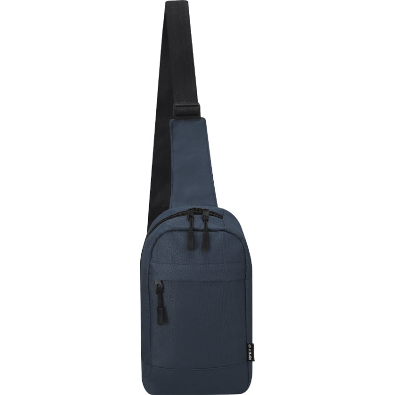 Shoulder bag made of durable RPET 600D polyester. With double pull zip closure system. Features a spacious main pocket and practical front pocket with zipper. Includes adjustable transport strap, with different usage options, providing versatility and comfort on any occasion.RPET material is made from recycled plastic to promote the reuse of plastic waste and help the sustainability of the planet.
