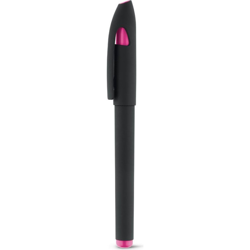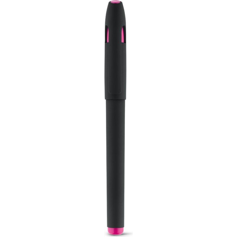 Ball pen with rubber soft touch finish. ABS cap and clip, colourful trim and anti-slip grip. Black gel ink. ø13 x 143 mm