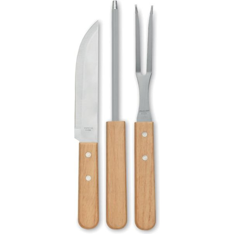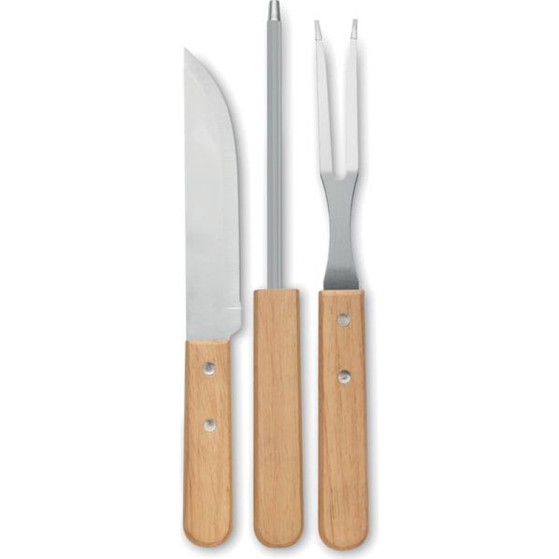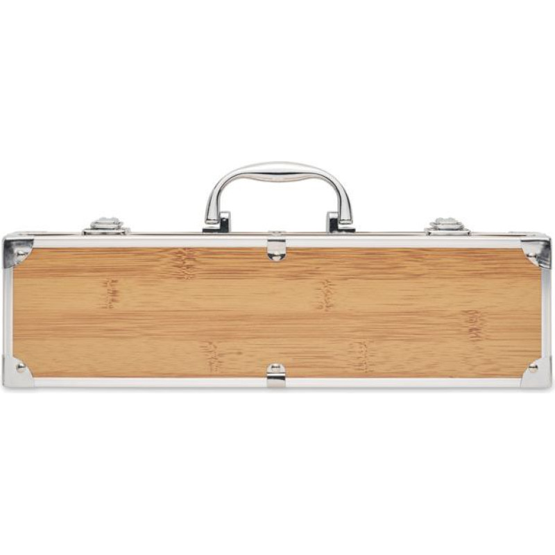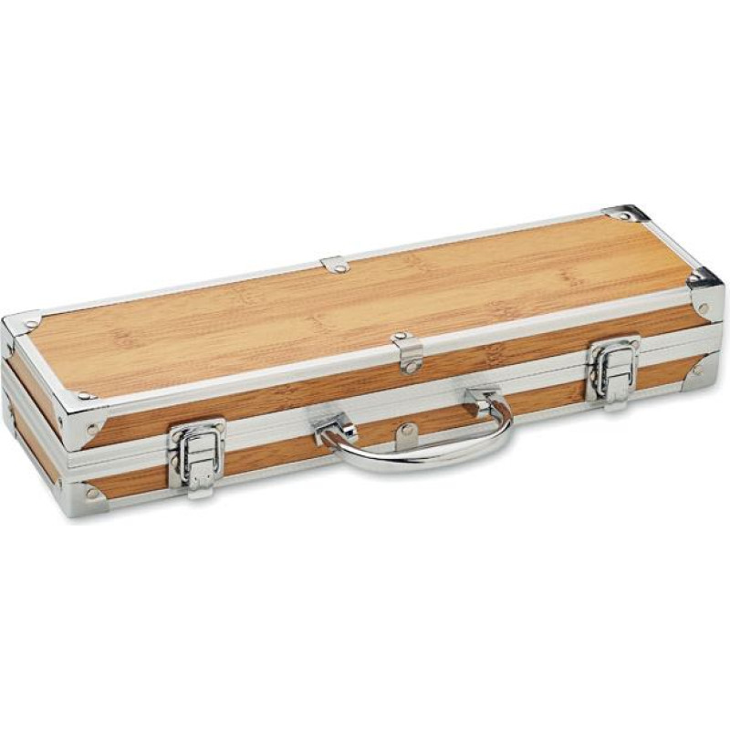 Turner Barbecue Set Bamboo. With Case, Tong, Fork & Spatula