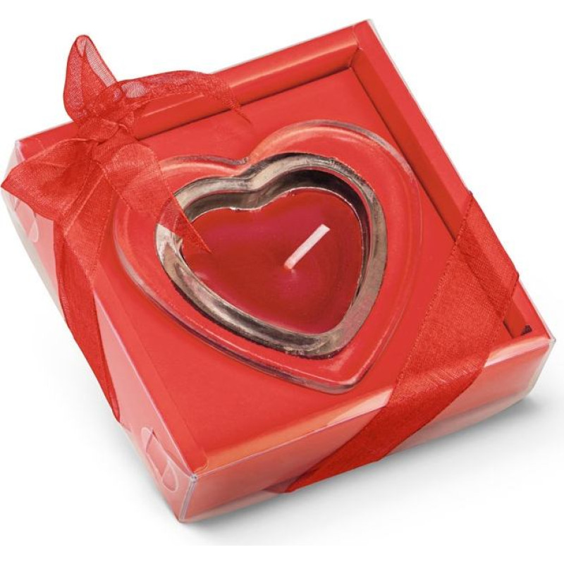 Heart shaped candle and glass base. Gift box included. Box: 93 x 93 x 25 mm