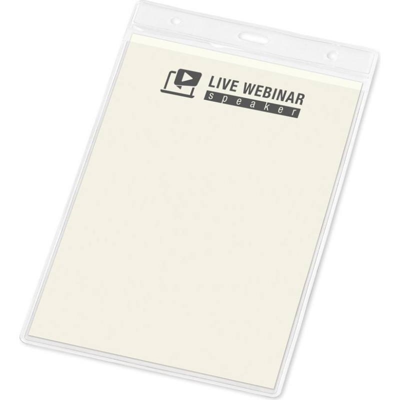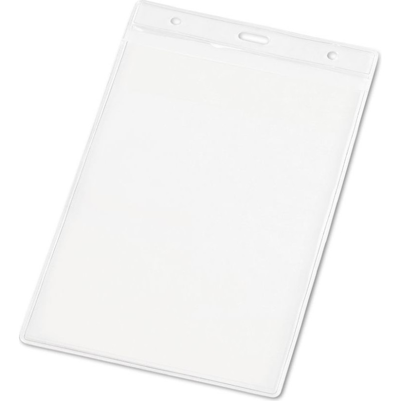 Vertical badge holder in PVC. This badge holder has holes that allow the use of a carabiner. 110 x 170 mm | Maximum recommended interior dimensions: 102 x 148 mm