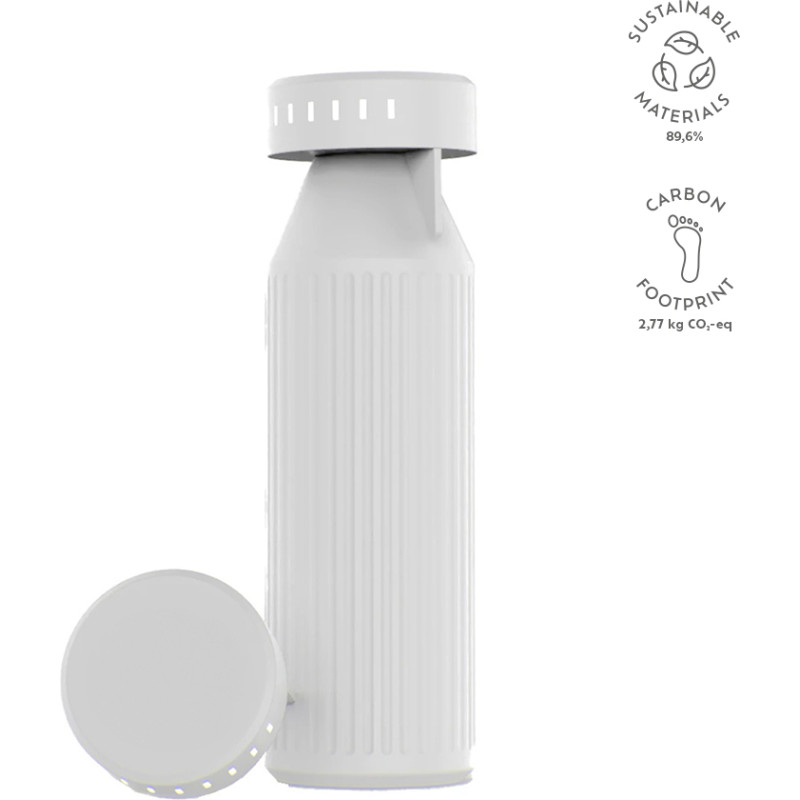 Timeos Bottle 690ml (650ml net) with LED indicators made of recycled stainless steel. Double-walled vacuum insulation will keep your drink hot for 30 hours and cold for 72 hours. The LED lights on the lid will remind you to drink every 30 minutes. A sustainable way to stay hydrated. Delivered in individual, environmentally friendly kraft packaging.