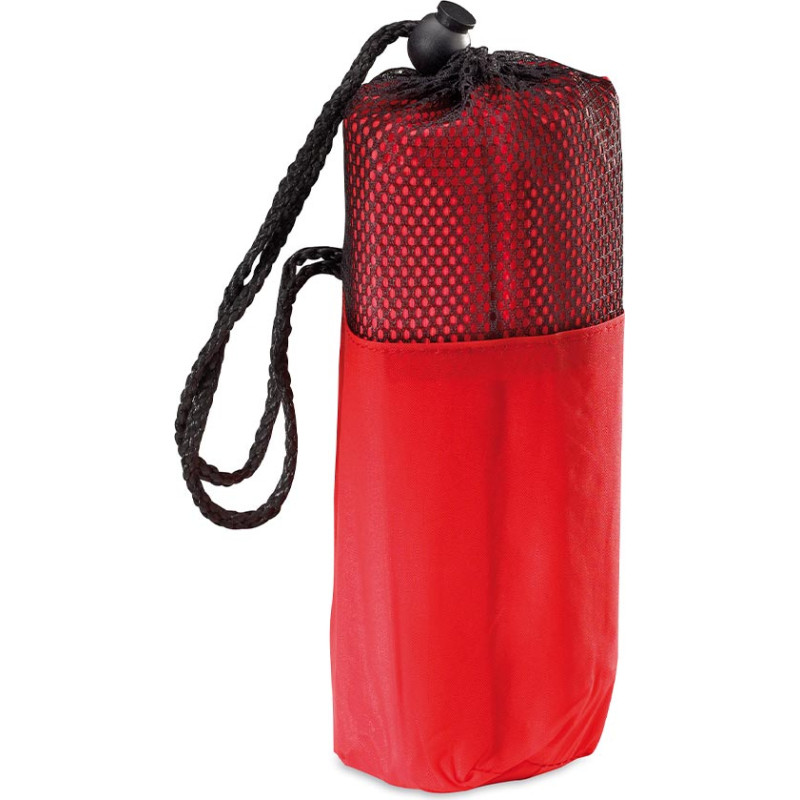 Resistant PEVA poncho in heat-sealed finish in a wide range of tones. With side closures of bracket and presented in an individual bag in matching color with upper part in netting and string with adjustment accessory. One size fits all for adult.